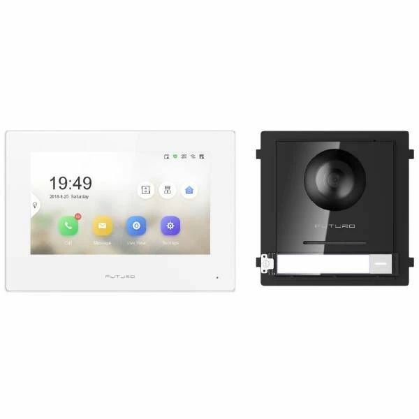 Futuro IP Intercom KIT 7″ Monitor and Surface Mount Door Station with POE Switch – White