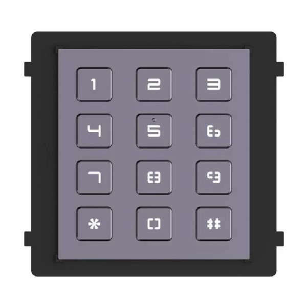 Keypad module with backlight, input pin code to open door, call indoor station via inputting room number, powered by other module.Â