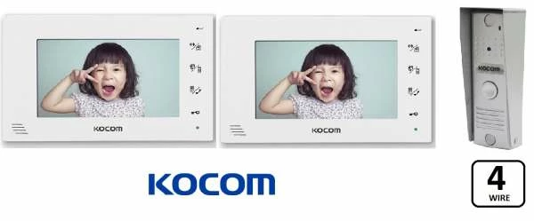 Kocom Colour hands Free Video 7″ Wide Screen KCV-D374, two screens with Slimline door station ,4 Wire. White