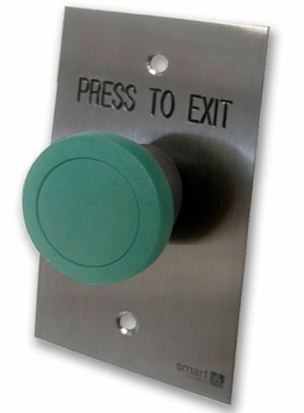 Smart Press to Exit Green Mushroom Button, Stainless Plate