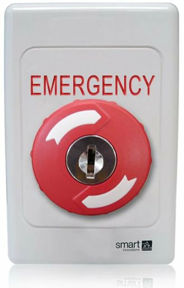 Smart Red Key-to-Release Button on Engraved Plastic Plate